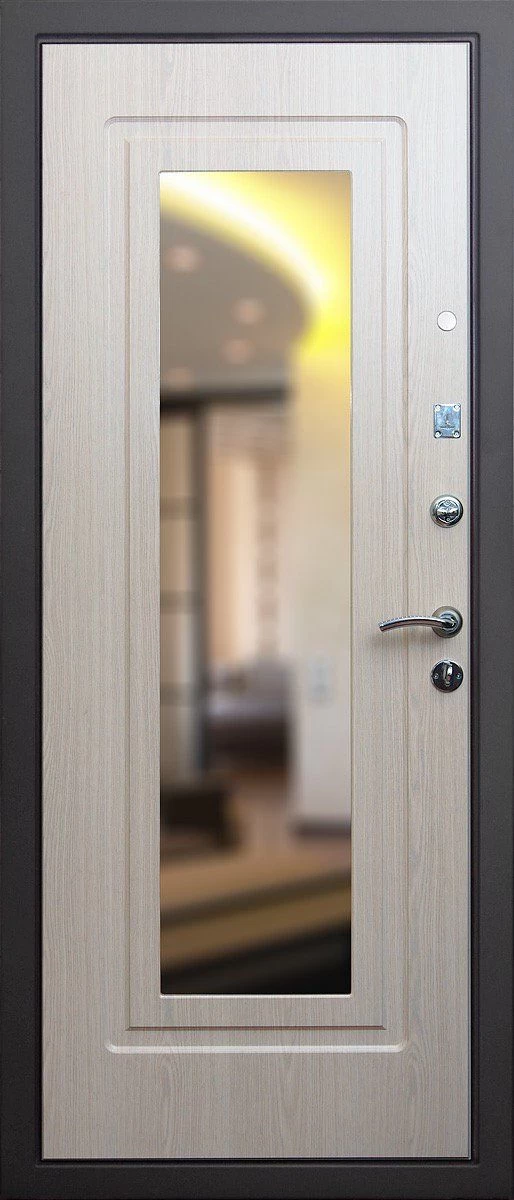 Прочная металлическая Дверь с зеркалом DZ385 по цене от 30 000 руб. под заказ в любой комплектации. Вы можете выбрать материал, замки, цилиндры и многое другое. Производим сами! Быстрая доставка и установка в Сухиничах.