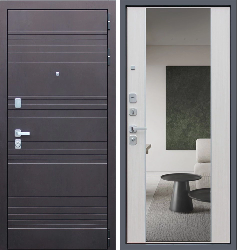 Надежная входная Дверь Дуэт с зеркалом премиум класса по цене 47 801 руб. Большая толщина стали защитит от проникновения в ваш дом, квартиру или коттедж. Используется очень качественная фурнитура: замки, цилиндры, ручки, защелки. Покрытие и отделка двери изготовлено под внимательным контролем производителя. Дверь имеет долгий срок службы и гарантию.