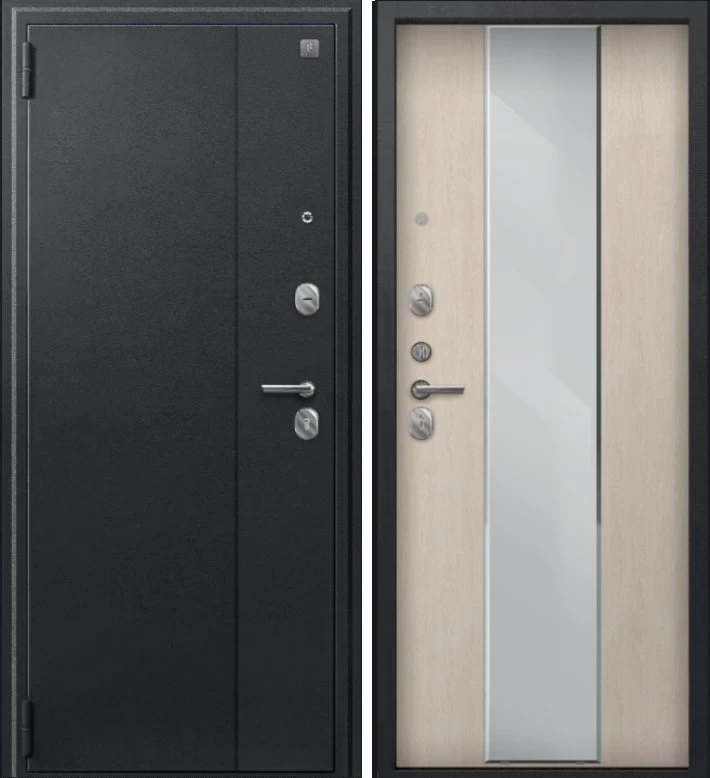 Надежная входная Дверь A-04 черный сатин - седой дуб зеркало премиум класса по цене 34 651 руб. Большая толщина стали защитит от проникновения в ваш дом, квартиру или коттедж. Используется очень качественная фурнитура: замки, цилиндры, ручки, защелки. Покрытие и отделка двери изготовлено под внимательным контролем производителя. Дверь имеет долгий срок службы и гарантию.