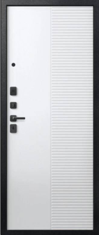 Надежная входная Дверь V-18 Черный муар + Кашемир графит - Кашемир Белый премиум класса по цене 47 301 руб. Большая толщина стали защитит от проникновения в ваш дом, квартиру или коттедж. Используется очень качественная фурнитура: замки, цилиндры, ручки, защелки. Покрытие и отделка двери изготовлено под внимательным контролем производителя. Дверь имеет долгий срок службы и гарантию.